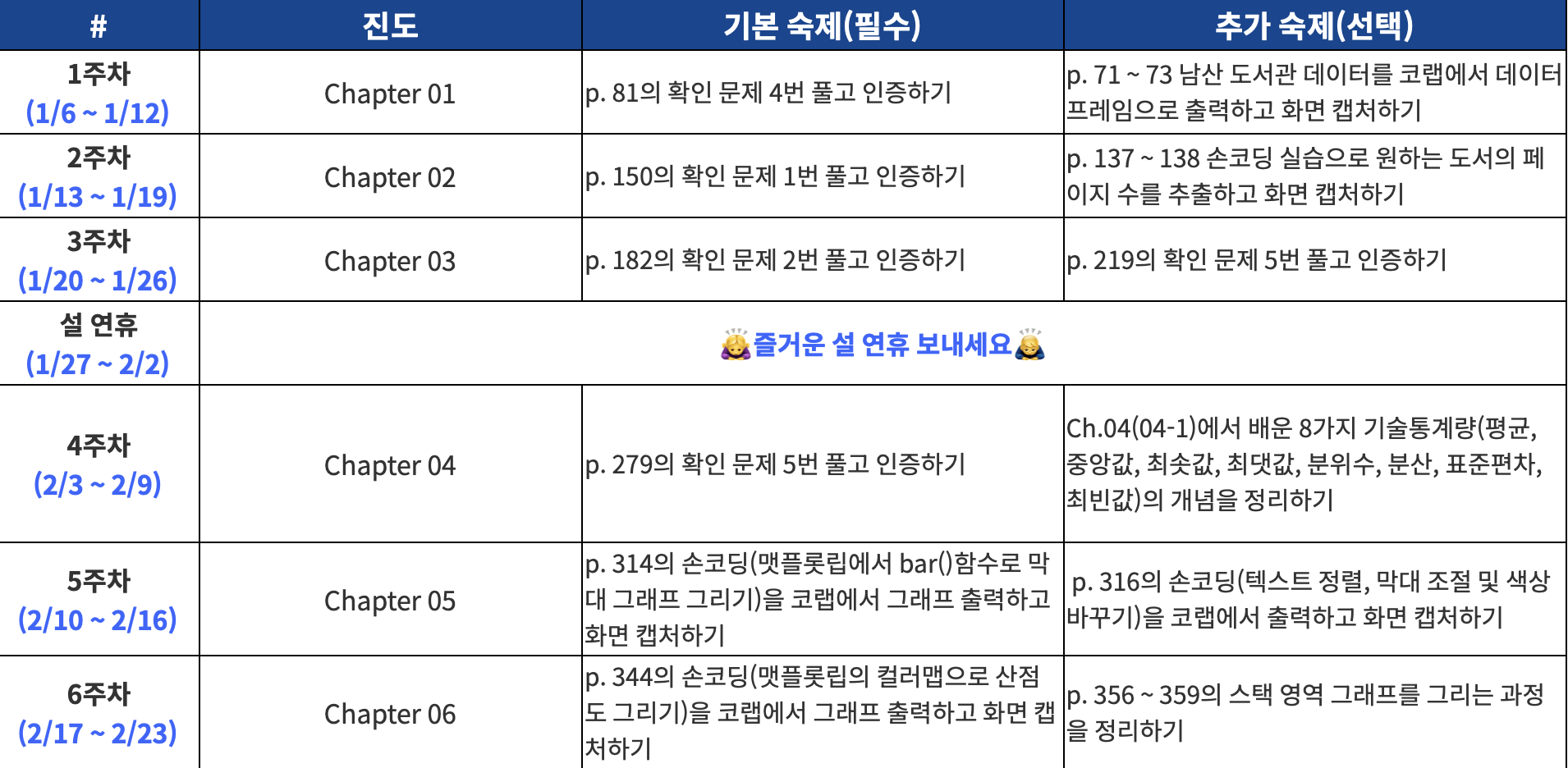 | [혼공분석]1주차_CSV파일의 이해 (1) | 2025.01.09 |