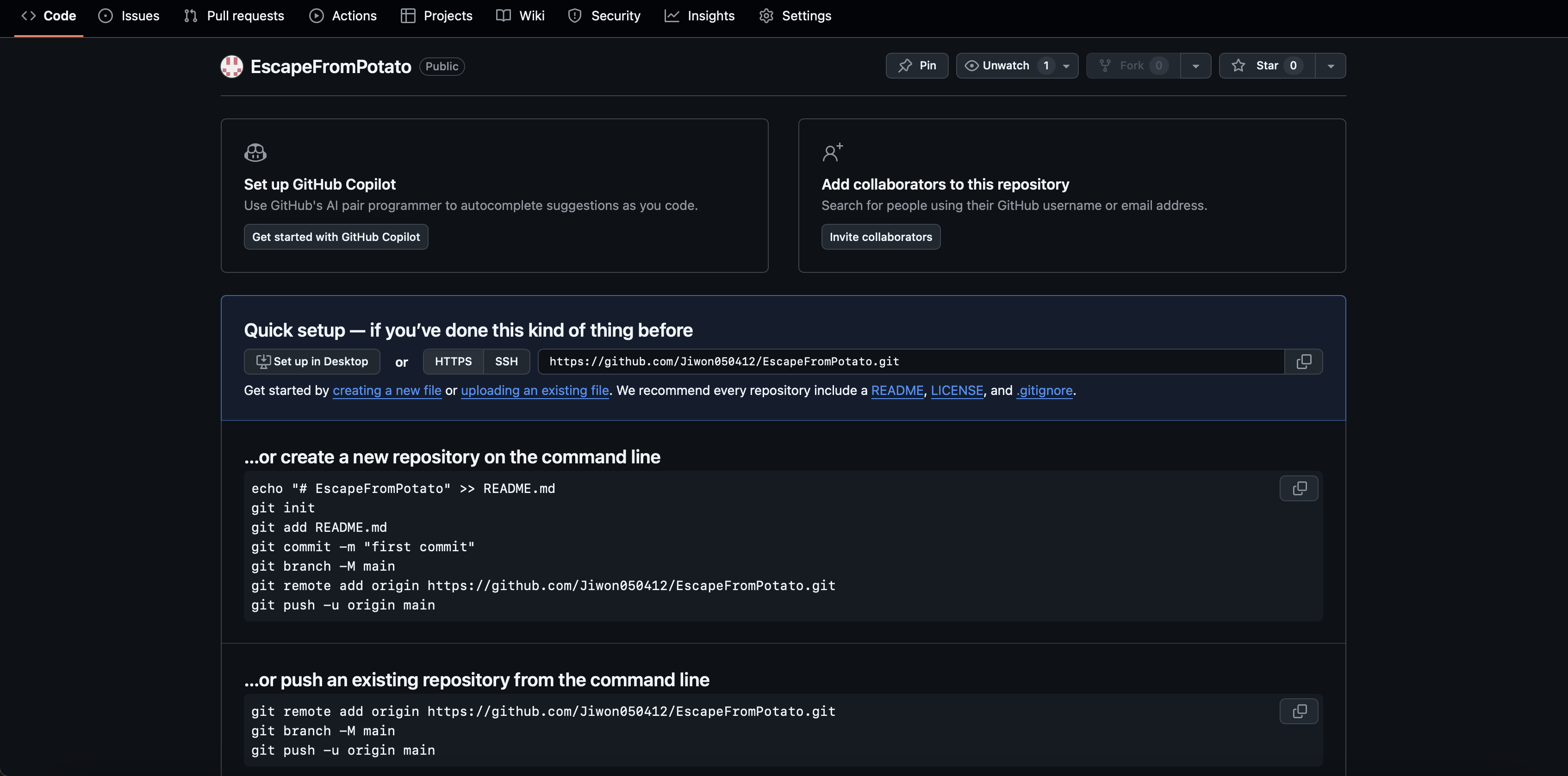 처음에 레포지토리를 만들면 github화면에 명령어가 엄청 많이 뜰텐데 그중에 하나가 이 명령어다.